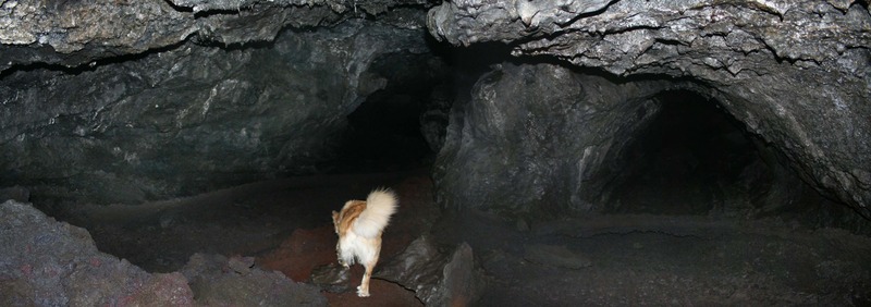 „Skriðið var inn um “augað”. Þá var komið í rúmgóða þverrás. Að ofanverðu var dropasteinabreiða á gólfinu og hraunnálar í lofti. Niður liggur rás, sem skiptist síðan í tvennt. Haldið var upp eftir hellinu og fetað varlega í gegnum dropasteinana. Þá var komið í rúmbetri þverrás, sem skiptist síðan í nokkrar aðrar. Litatilbrigðin eru mikil, sem og hraunmyndanir þar sem gangar og op opnast í allar áttir. Rás liggur upp á við, en hún lokast síðan með hruni. Rásin liggur talsverðan spotta niður á við. Þar er fallegur rauðlitaður flór. Rásin þrengist síðan uns loft og gólf koma saman. Fetið var tekið til baka að “auganu” og síðan haldið niður þá rás. Vinstri rásin þrengist og lokast, en sú hægri liggur áfram niður eftir. Á hana kemur þverrás, nokkru lægri. Rásinni var fylgt yfir hana. Hún þrengist svolítið, en opnast síðan aftur í stórum litskrúðugum geimi. Haldið var til baka upp rásina, hoppað niður í þverrásina og henni fylgt til vinstri. Þá var komið út í opnu hellisins utan við “augað”.