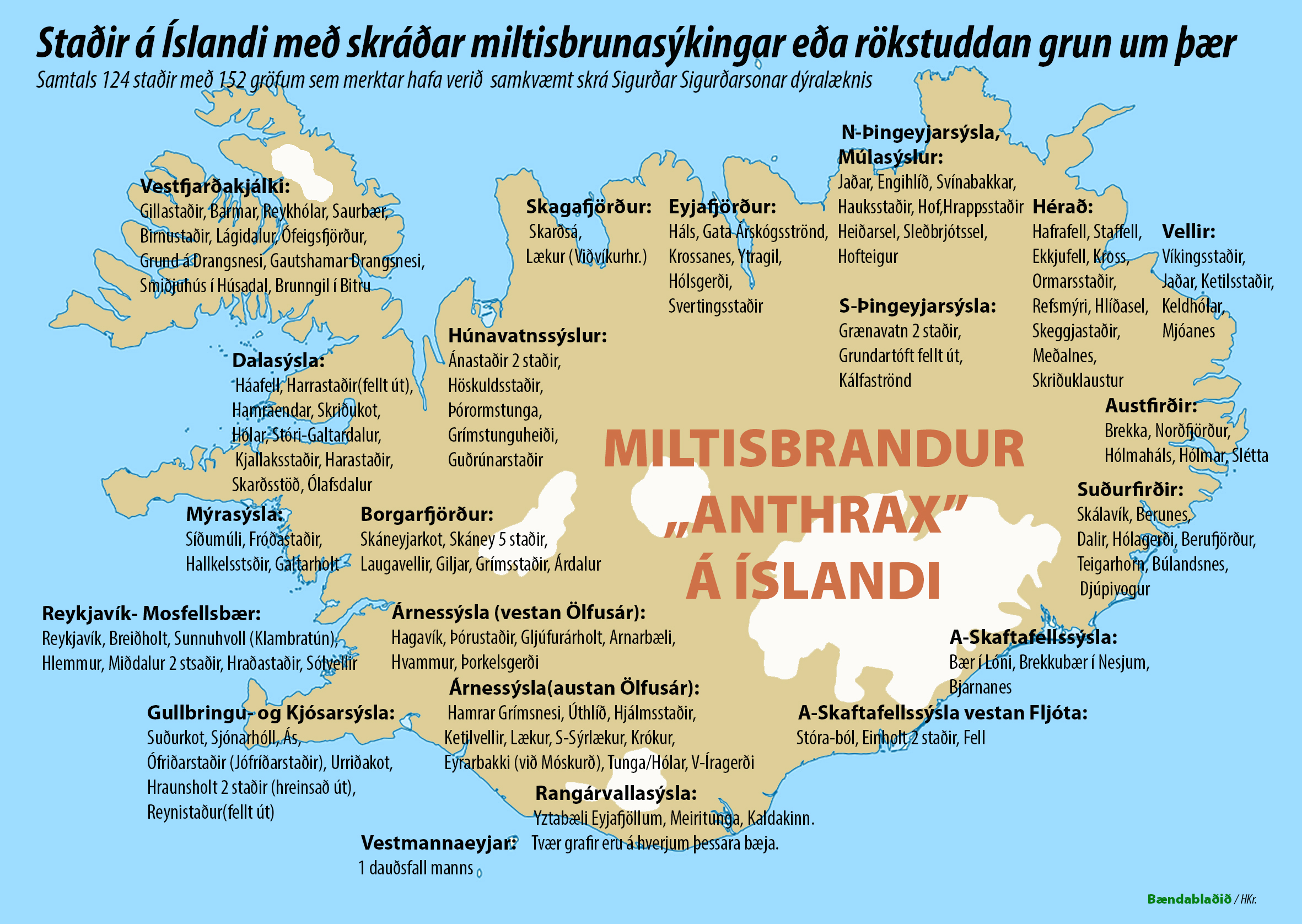 Á wikipedia má m.a. lesa eftirfarandi um „miltisbrand“ á Íslandi: