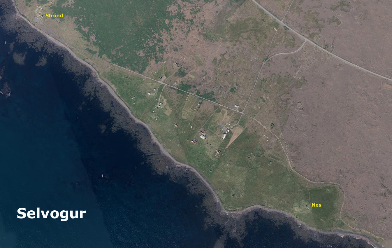 Ísólfsskáli er þar austast við sjó.