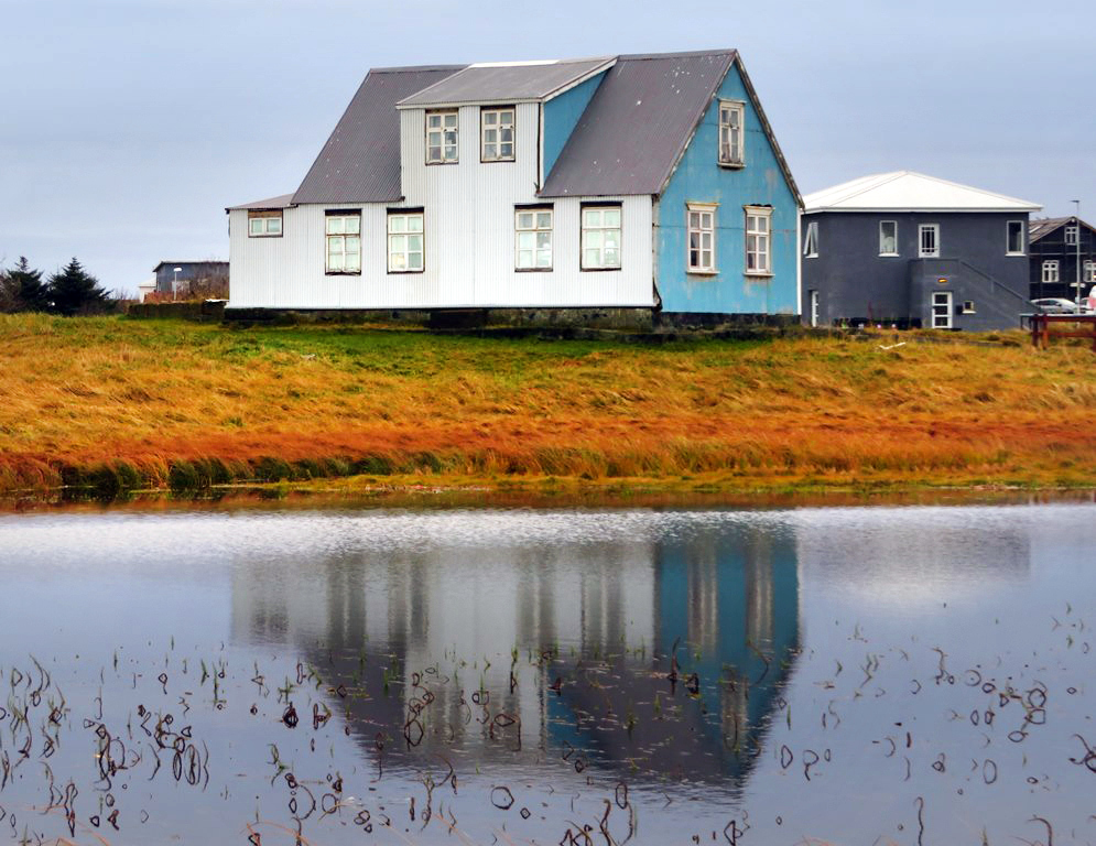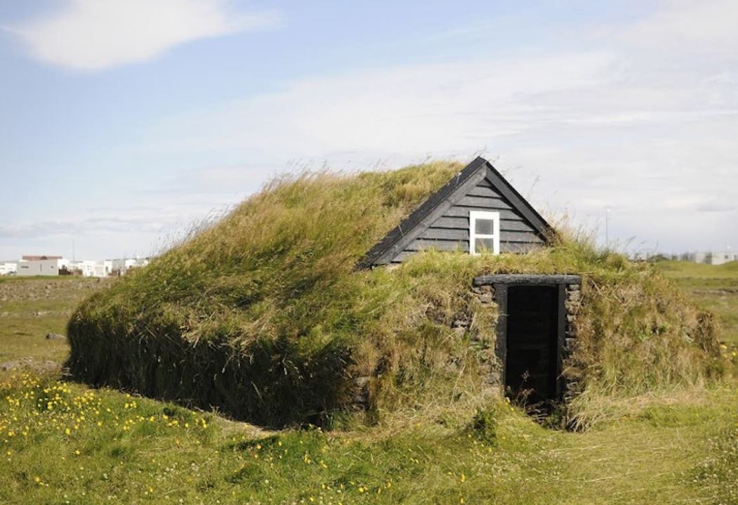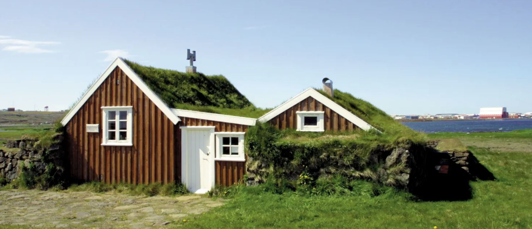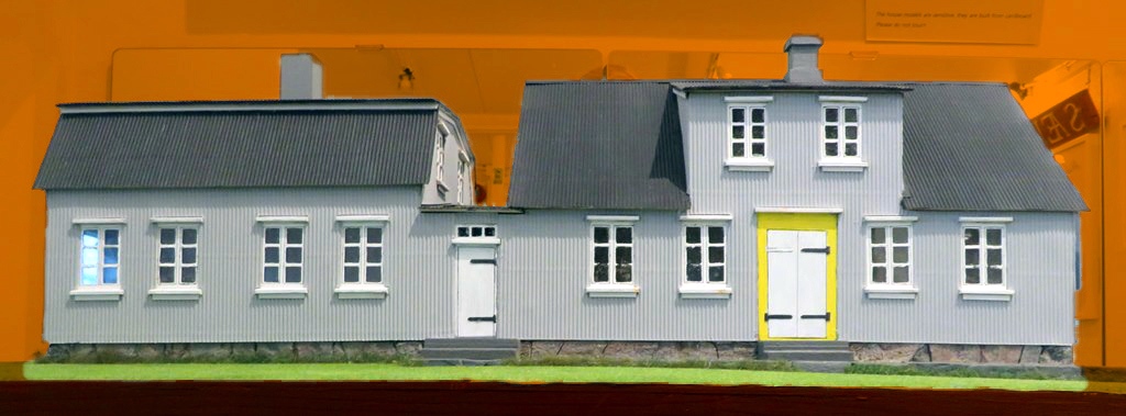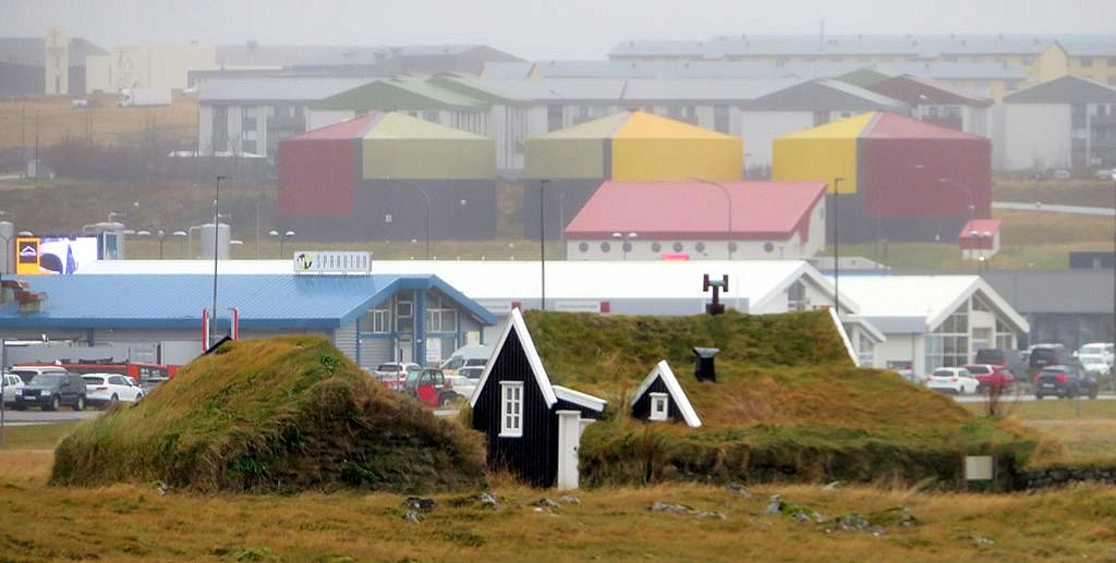 Stekkjarkot – Víkingasafnið í bakgrunni.