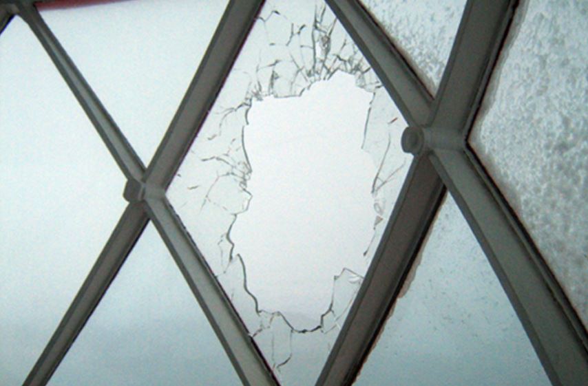 Steypt var upp í öll gluggaopin síðar meir til að verjast skemmdarverkum.