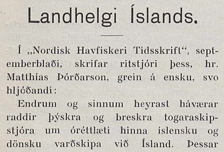 Þýðing úr skrifum Matthíasar í „Nordisk Havfiskeri Tidskrift“ í Ægi 1927.