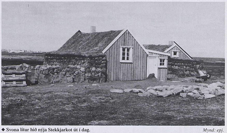 „Torfbærinn Stekkjarkot er við Fitjar, á milli Innri- og Ytri-Njarðvíkur. Búið var á bænum með hléum frá árinu 1857 til ársins 1924. Á fimmtíu ára afmæli Njarðvíkurkaupstaðar fyrir fimmtán árum var ákveðið að endurreisa bæinn, sem staðið hafði í eyði.