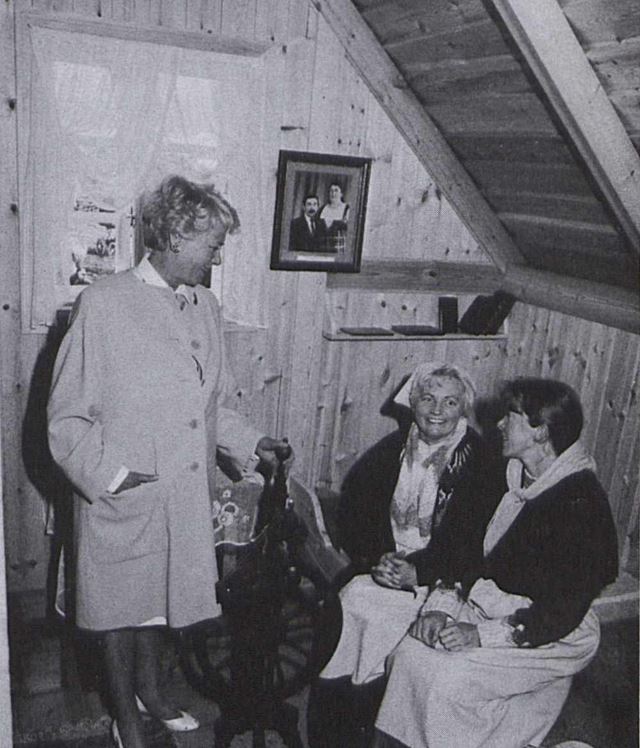 Stekkjarkot – Forseti Íslands, frú Vigdís Finnbogadóttir á spjalli við þœr Helgu