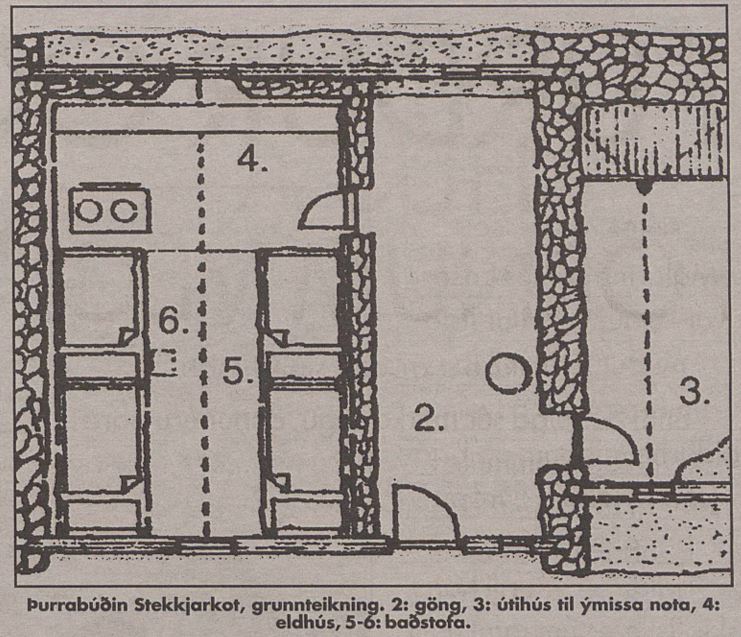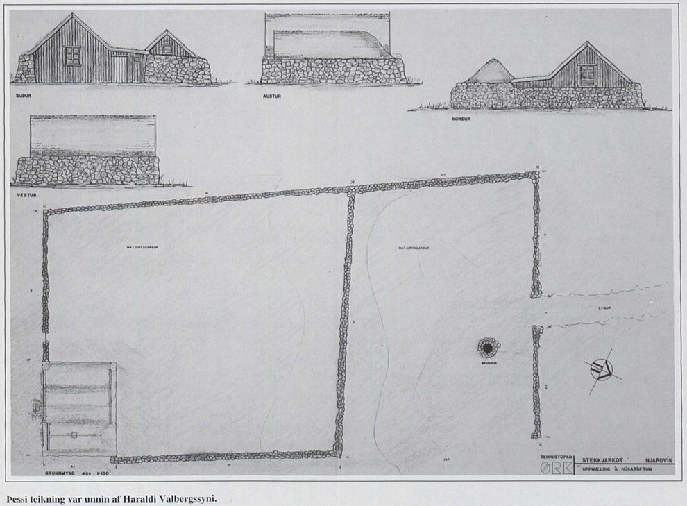 Stekkjarkot – Teikning unnin af Haraldi Valbergssyni.