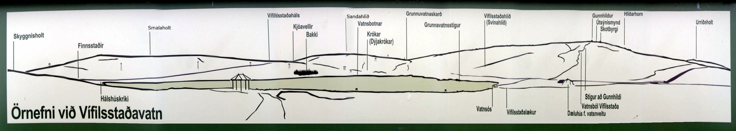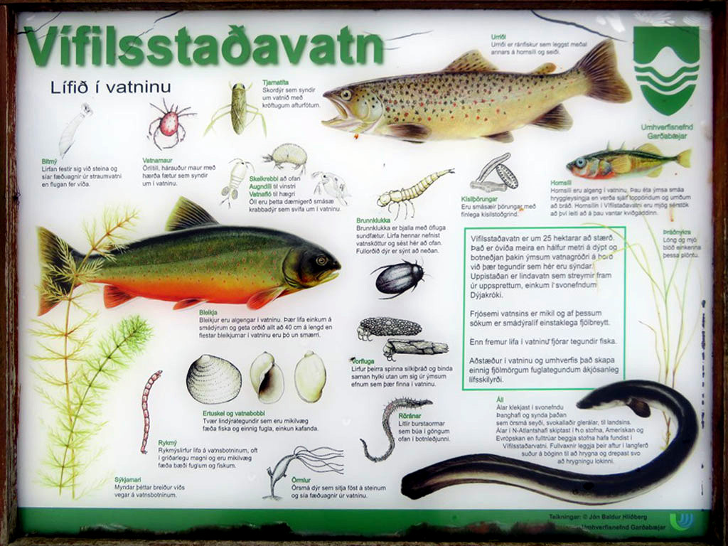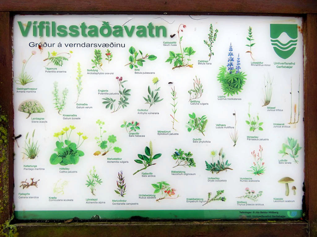 Við vestanvert Vífilsstaðavatn eru fjögur skilti; upplýsingaskilti, fiskaskilti, fuglaskilti og blómaskilti. Á hinu fyrstnefnda má lesa eftirfarandi: