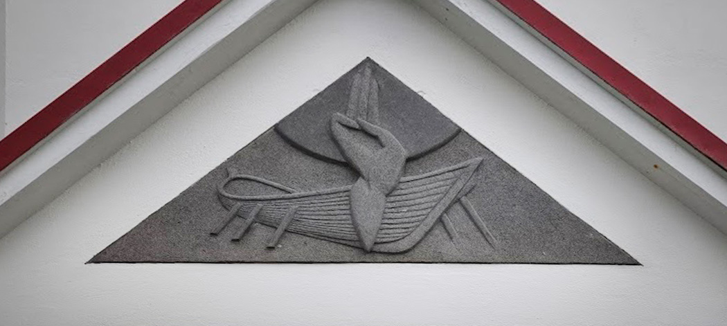 Lágmyndin er frá 1996 og var staðsett yfir ytra andyri kirkjunnar. Hún er úr grásteini, kostuð af Kvenfélagi Garðabæjar (kostaði kr. 189.614) og á að tákna, sem fyrr sagði, Pál postula með vísan til atvinnuhátta Garðahverfinga fyrrum þar sem árabáturinn er annars vegar.
