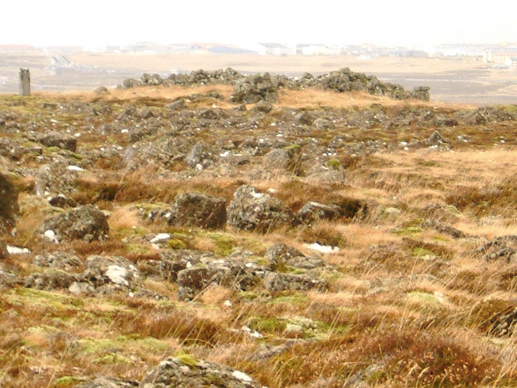 Stóri-Krossgarðurinn á heiðinni sást í norðvestri.