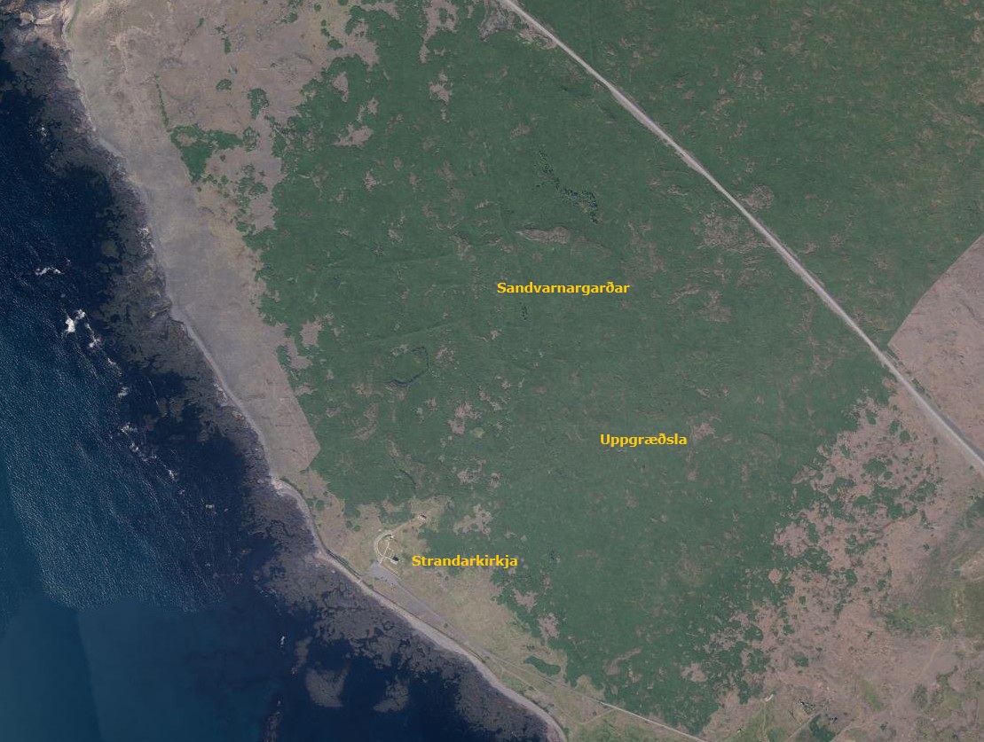 En höfuðóvinur byggðarinnar, sandurinn, skoraði sjálfa Strandakirkju á hólm og skeytti ekki um helgi hennar. Sandurinn umlukti bygðina alla sem lá að kirkjunni, Selvogshverfið, í faðmi sínum. Og að síðustu einangraði hann kirkjuna sjálfa. Sandfokið lagði í eyði prestssetrið Strönd, rétt hjá kirkjunni, með mörgum hjáleigum, og myndaði síðan breitt sandbelti frá sjónum og upp til heiða, milli Selvogsbyggðar og Strandakirkju. Að lokum var svo komið, fyrir fáum árum, að oft var illfært í Strandakirkju, eða úr kirkju, heim í Selvog, fyrir sandbyl.