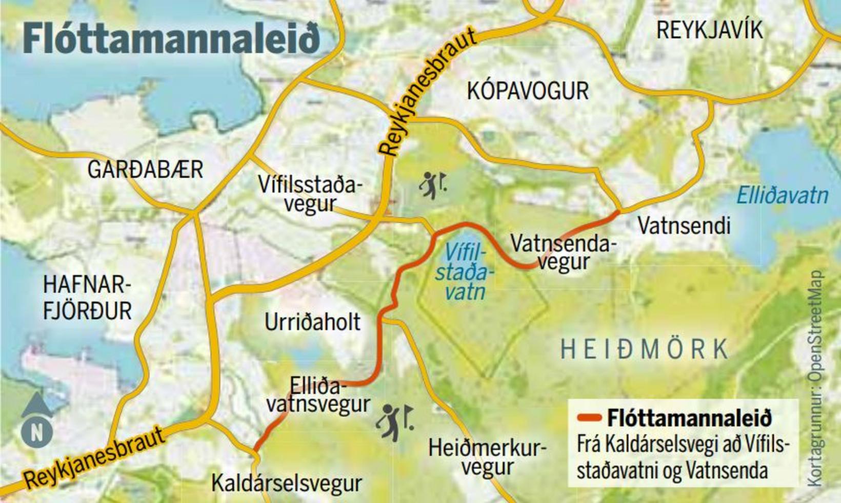 Vegurinn liggur frá Hafnarfirði, meðfram Urriðaholti, framhjá og upp í átt að Heiðmörk. Í dag vill bæjarstjórn Garðabæjar gera nýja útkeyrslu frá Urriðaholtshverfinu að Flóttamannavegi. Í raun ættu bæjarfélögin tvö að sameinast, loksins, um að gera farveg gamla vegarins að meginleið óþarfa gegnumaksturs um miðbik þeirra og stefna þannig umferð á milli Suðurnesja og Suðurlandsvegar, sem ekki á erindi inn í byggðalögin, um þennan veg og létta þar með umtalsvert bæði á álagspunktum og síaukinni umferð, sem kemur til an vafa með að verða verulegt vandamál innan fárra ára.