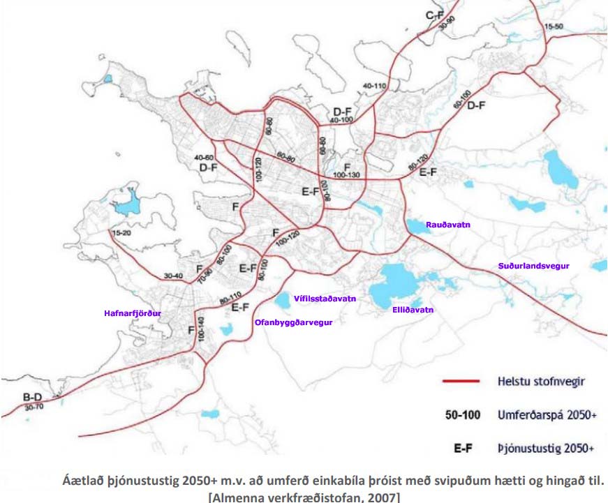 Í skýrslu Vegagerðarinnar segir að Ofanbyggðarvegur frá Kópavogi til Hafnarfjarðar sé eina leiðin sem hugsanlega gæti létt umferð af Reykjanesbraut og Hafnarfjarðarvegi.