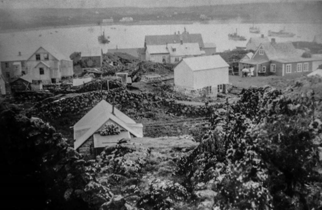 Vil ég í því sambandi leggja fram mitt álit. Ég hygg, að takmörkin hafi verið klettar tveir, við sjó fram, Skipaklettur að vestan og Linnets- eða Fjósaklettur að austan. Að sunnan, sjávarkampurinn, en hraunbrúnin að norðan og austan. Til frekari skýringar fyrir okkur nú til dags verða mörkin: Merkurgatan að vestan, Linnetsstígur að austan, Strandgatan og Vesturgatan að sunnan og Austurgatan frá Fríkirkju vestur í Kirkjuveg, undir hólnum við hús Bjarna læknis Snæbjörnssonar um lóð Lóðsbræðra í Merkurgötu. Þykir mér ekki ólíklegt, að af þessu svæði hafi mátt afla heyja handa einni kú og jafnvel nokkrum kindum.
