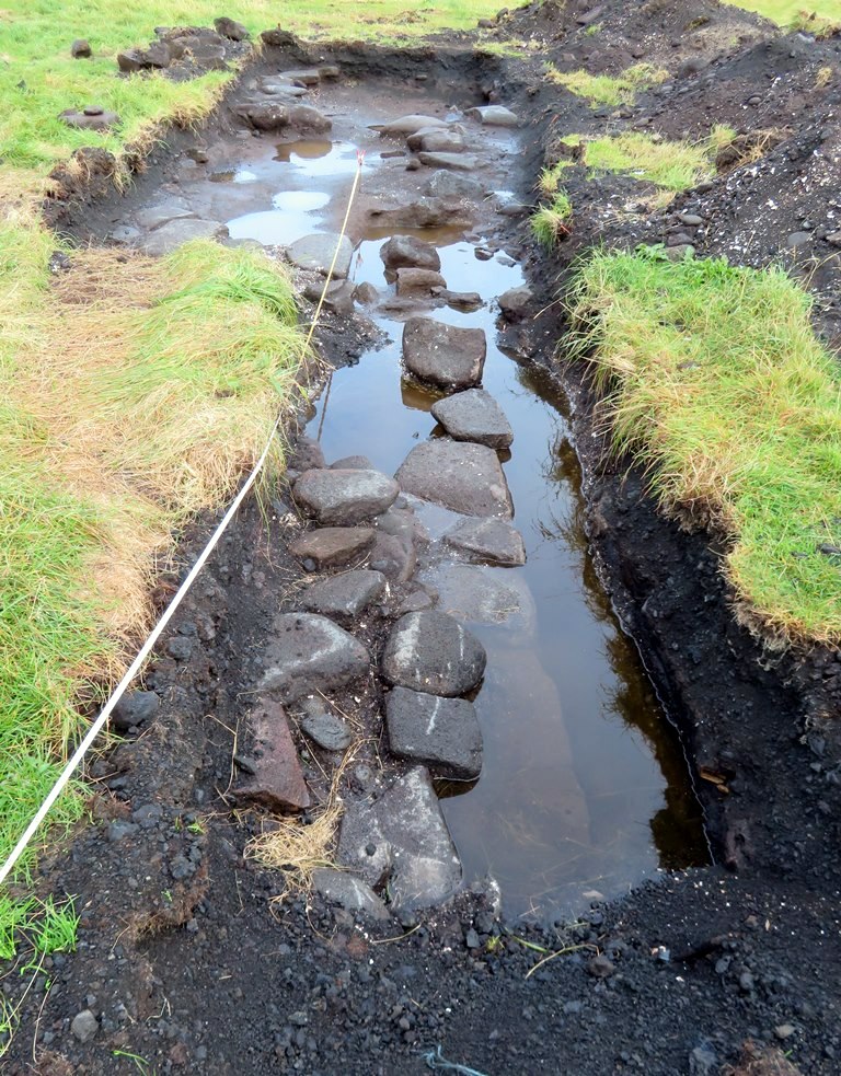 Það hefur runnið í lækjum yfir hleðsluna og jafnvel smogið inn milli steinanna.“ segir Jónsson í grein um Ögmundarhraun frá 1983.