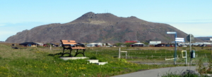 Við göngustíg að Gerðavöllum, sunnan Sjávarbrautar, framhald Vesturbrautar, er bekkur með eftirfarandi áletrun: