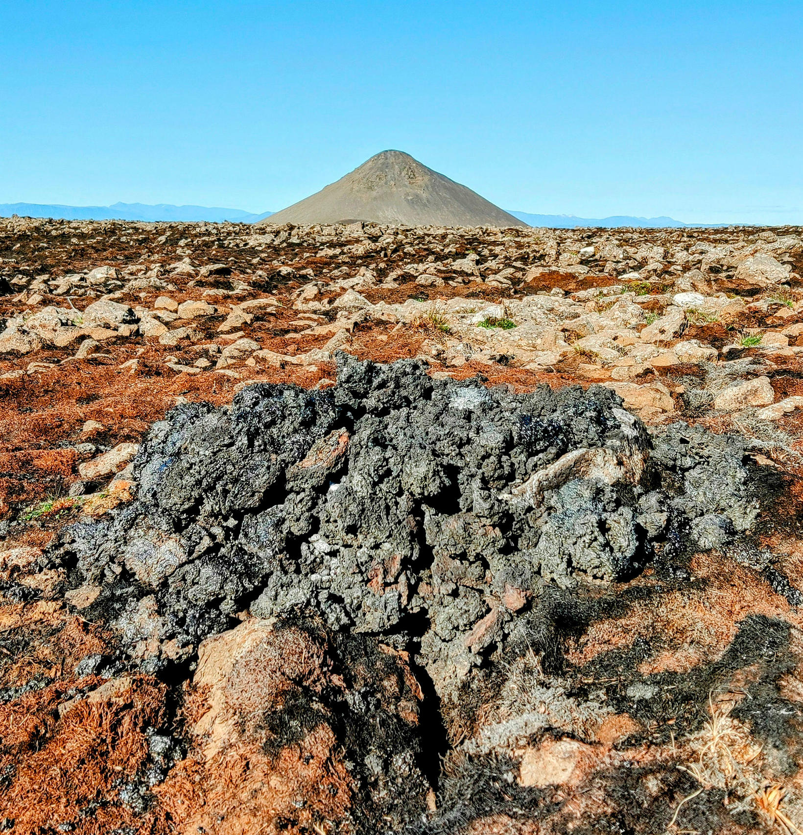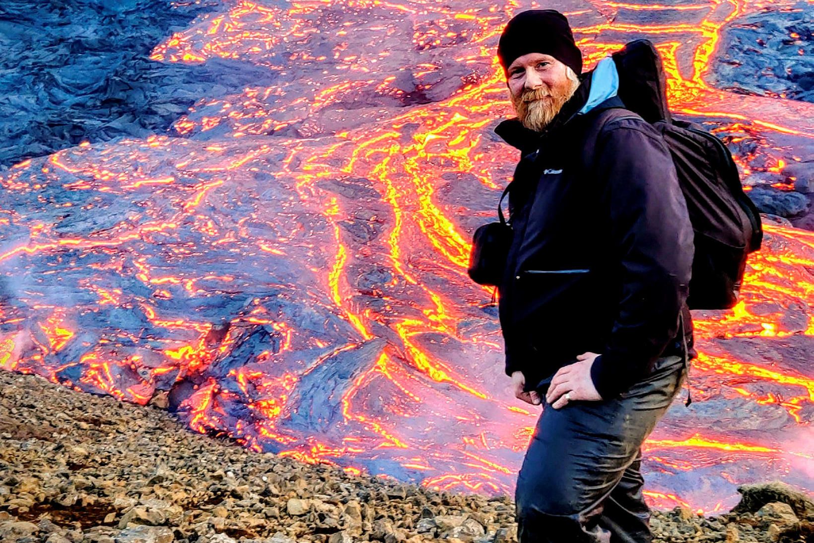 Hann birti mynd af klessunni í Iceland Geologyhópnum á Facebook og stakk upp á því að þetta væri minnsta hraunbreiða í heimi. Fékk hann góðar undirtektir og var húmorinn ekki langt undan hjá öðrum notendum sem spurðu í góðu gamni hvort best væri að fylgja leið A eða B að hrauninu.“
