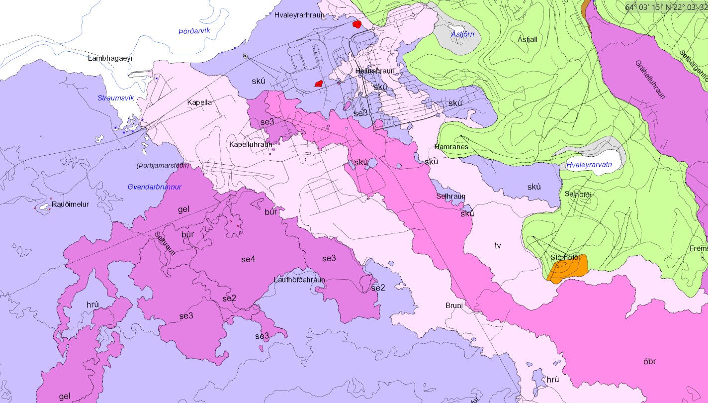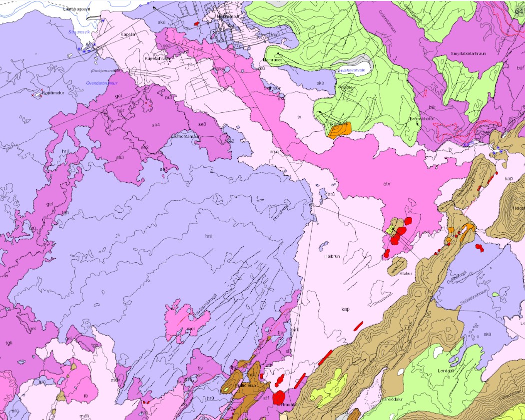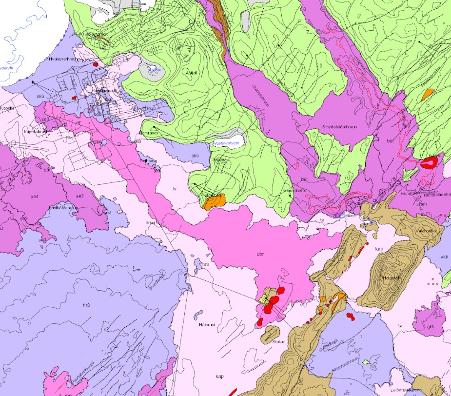 Þegar skoðað er jarðfræðikort ÍSOR, unnið af margfróðu fólki á löngum tíma, af Reykjanesskaga er áhugavert að skoða helstu hraunin ofan Hafnarfjarðar, sérstaklega í hinu sögulega samhengi þeirra. Hraununum eru gefin nafngiftirnar kap, gel, búr, se, óbr, skú, tv og stó. Þetta eru skammstafnir yfir „Kapelluhraun, „Geldingahraun“, Búrfellshraun“, Selhraun“, Óbrinnishólahraun“, „Skúlatúnshraun“, „Tvíbollahraun“, „Stórabollahraun“ og ekki síst meginhraunið „Hrútagjárdyngjuhraun. Hellnahraunin, eldra og yngra virðast vera samheiti yfir Stórabolla- og Tvíbollahraunin, sem runnu með u.þ.b. 1000 ára millibili.