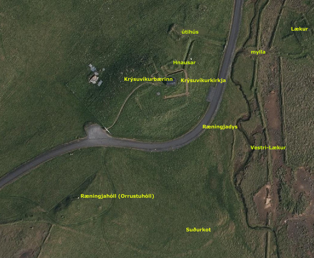 Nú er Ræningjadysin horfin undir malbikaðan veg neðan við Krýsuvíkurkirkju, en Ræningjahóllinn (Orrustuhóllinn) er þarna enn suðvestan við hana.