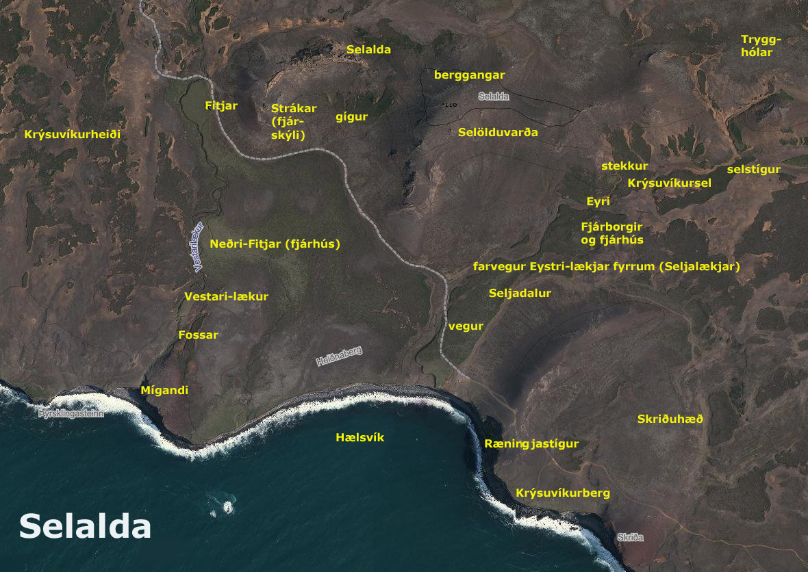 Tökum dæmi. Í örnefnalýsingu Gísla Sigurðssonar um Krýsuvík (aðalheildarmaður Ólafur Þorvaldsson og Krýsuvíkurbræður synir Guðmundar í Krýsuvík, aðallega tveir; voru fluttir til Hafnarfjarðar, annar bjó á Holtsgötu ?, en hinn í Þorgeirstúni. Unnið á milli 1960–70), segir: „Hér framundan til vesturs er tvær öldur að sjá. Sú nyrðri heitir Selalda. Á henni er Selölduvarða. Fram undan Selöldu er Seljadalur. Vestur eftir honum er farvegur Seljalækur. Beggja megin lækjarfarvegsins eru nokkrar tættur Seljanna. En hér var haft í seli frá Krýsuvíkurbæjunum á fyrri tíð. Krýsuvíkursel voru þau kölluð“.