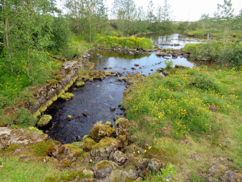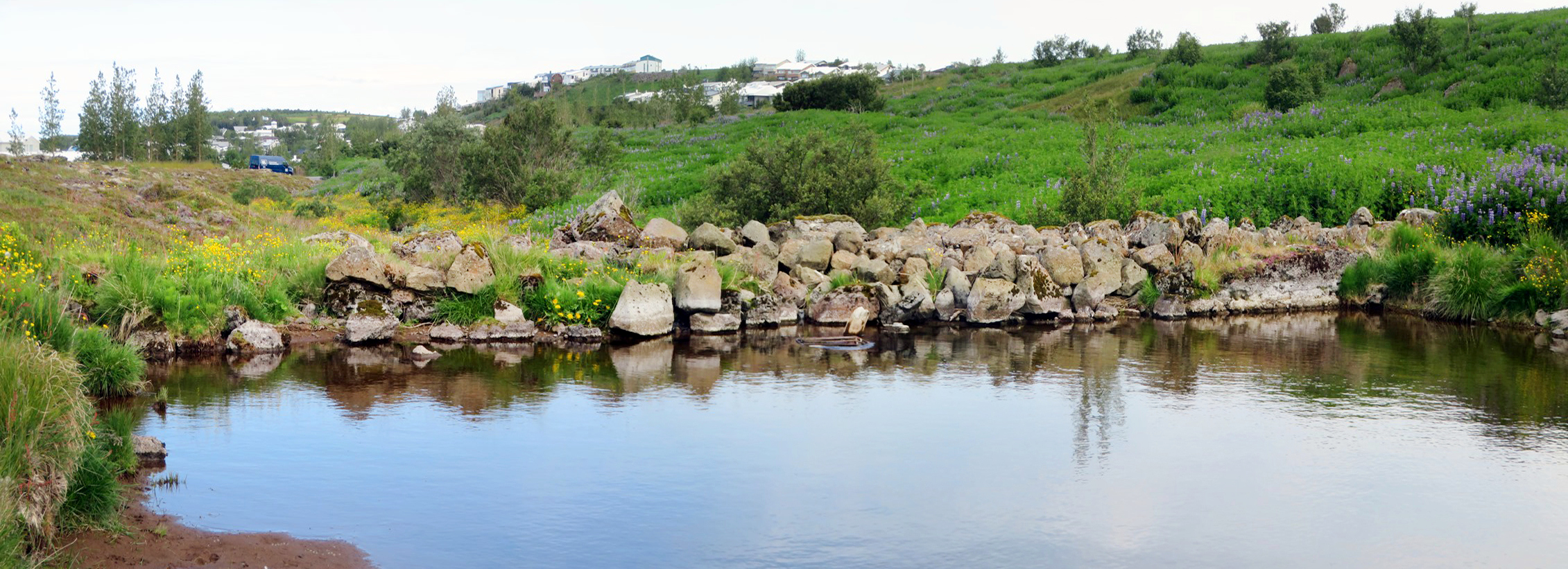 Þegar gengið er upp með læknum er kemur úr Lækjarbotnum má sjá hvar hann liðast með norðurjaðri Stekkjarhrauns og Gráhelluhrauns (Lækjarbotnahrauns). Við upptökin eru hleðslur undan timburhúsi, sem þar stóð um tíma á vatnsþró. Frá húsinu lá trépípa niður til bæjarins. Sjá má leifar hennar neðan við hleðslurnar. Skammt neðar er stíflumannvirki, steypt og hlaðið. Á skilti þarna stendur eftirfarandi: