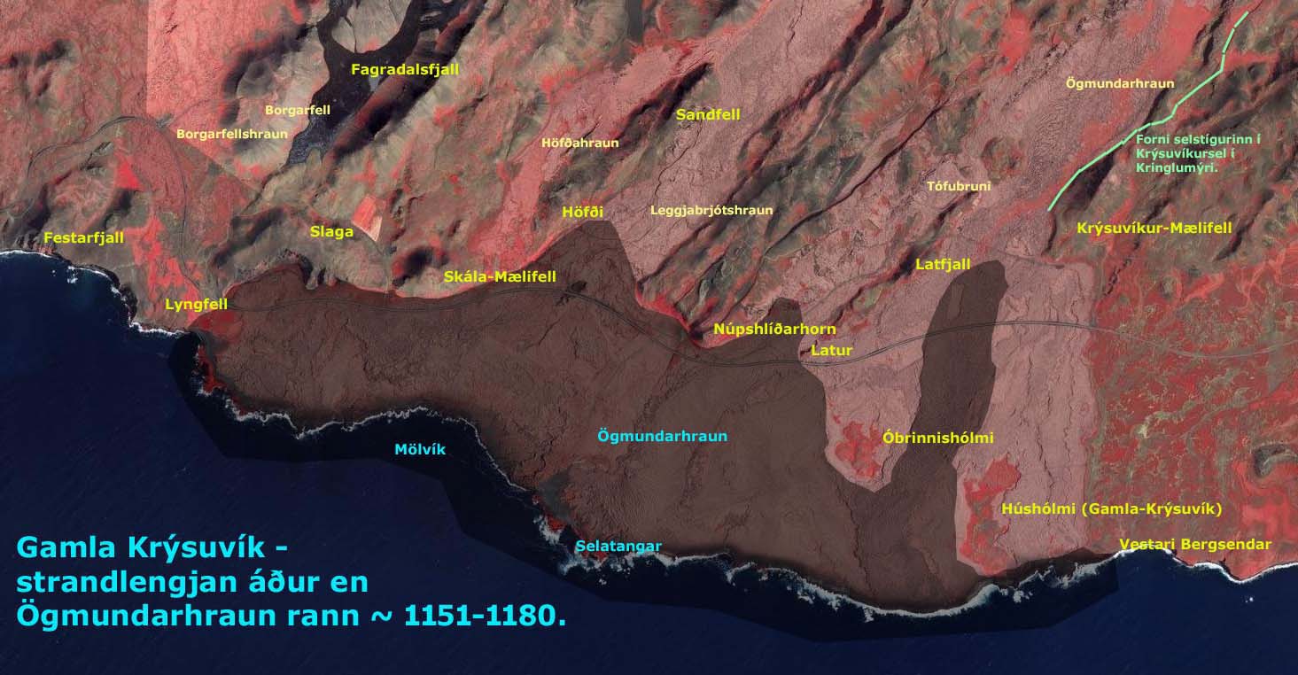 Í eldgosahrinu þeirri, sem reið yfir í Krýsuvíkurkerfinu (einnig kennt við Trölladyngju) á 12.öld, betur þekkt sem Krýsuvíkureldar, rann meðal annars hraun sem nefnist Ögmundarhraun. Það hefur vakið meiri áhuga vísindamanna en önnur hraun á skaganum vegna þess að það rann yfir byggt svæði og þar eru í óbrunnum eyjum varðveittar minjar húsa, rétta og garða sem hraunið hefur að hluta til runnið yfir eða ekki náð að til. Krýsuvíkureldar hafa nafn sitt frá því að í þeirri goshrinu tók af bæinn Krýsuvík.
