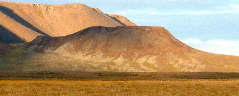 Gengið var frá Ísólfsskálavegi til suðurs austan við Latfjall. Grábrúnn refur fylgdist með göngufólkinu, en hann hafði þó meiri áhuga á fílnum í fjallinu.