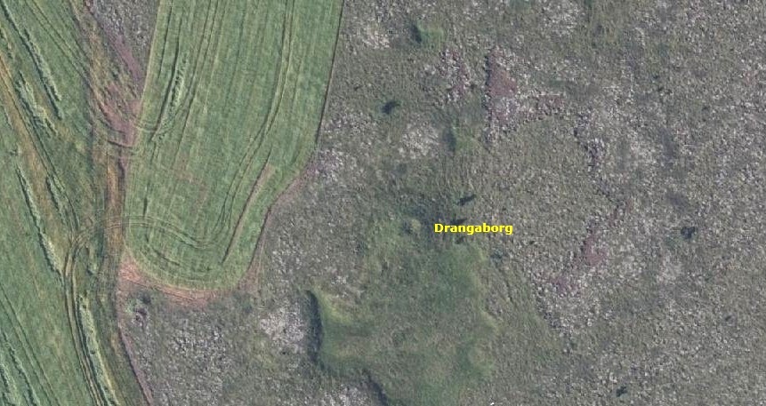 Drangaborgin í er annars gróinni lítilli hraunspildu, Drangahólum.