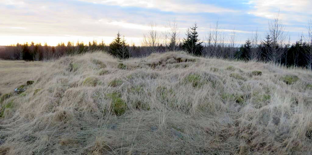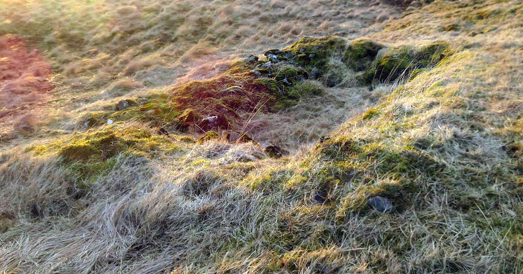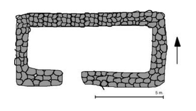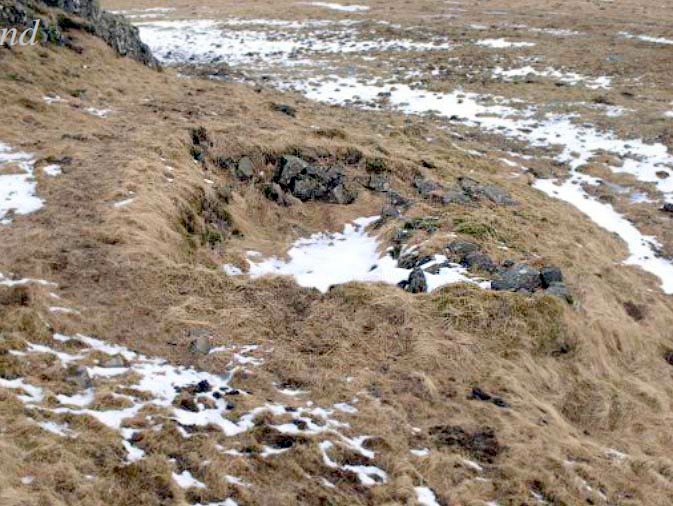 Vestan við gerðið eru undirstöður undan gaddavírsgirðingu sem liggur í NV-SA.