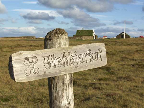 Stekkjarkot – Víkingasafnið í bakgrunni.