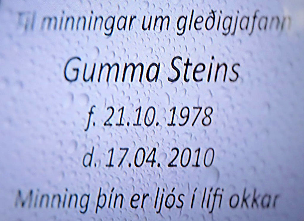 „Til minningar um gleðigjafann Gumma Steins, f. 21.10.1978, d. 17.04.2010. Minning þín er ljós í lífi okkar.“