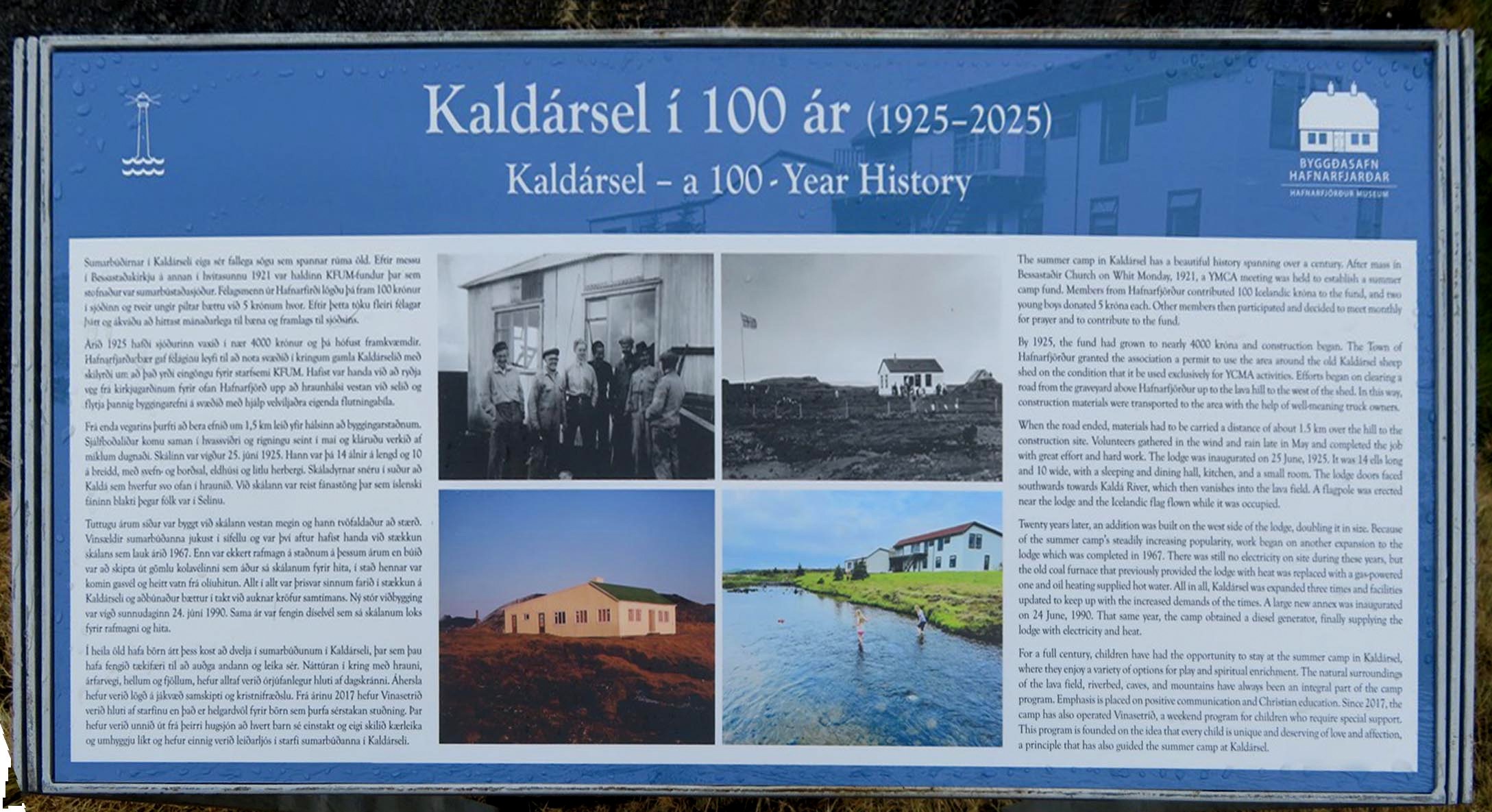 Við affall Kaldár í Kaldárbotnum er skilti; „Kaldárssel í 100 ár (1925-2025)„. Á því er eftirfarandi upplýsingar: