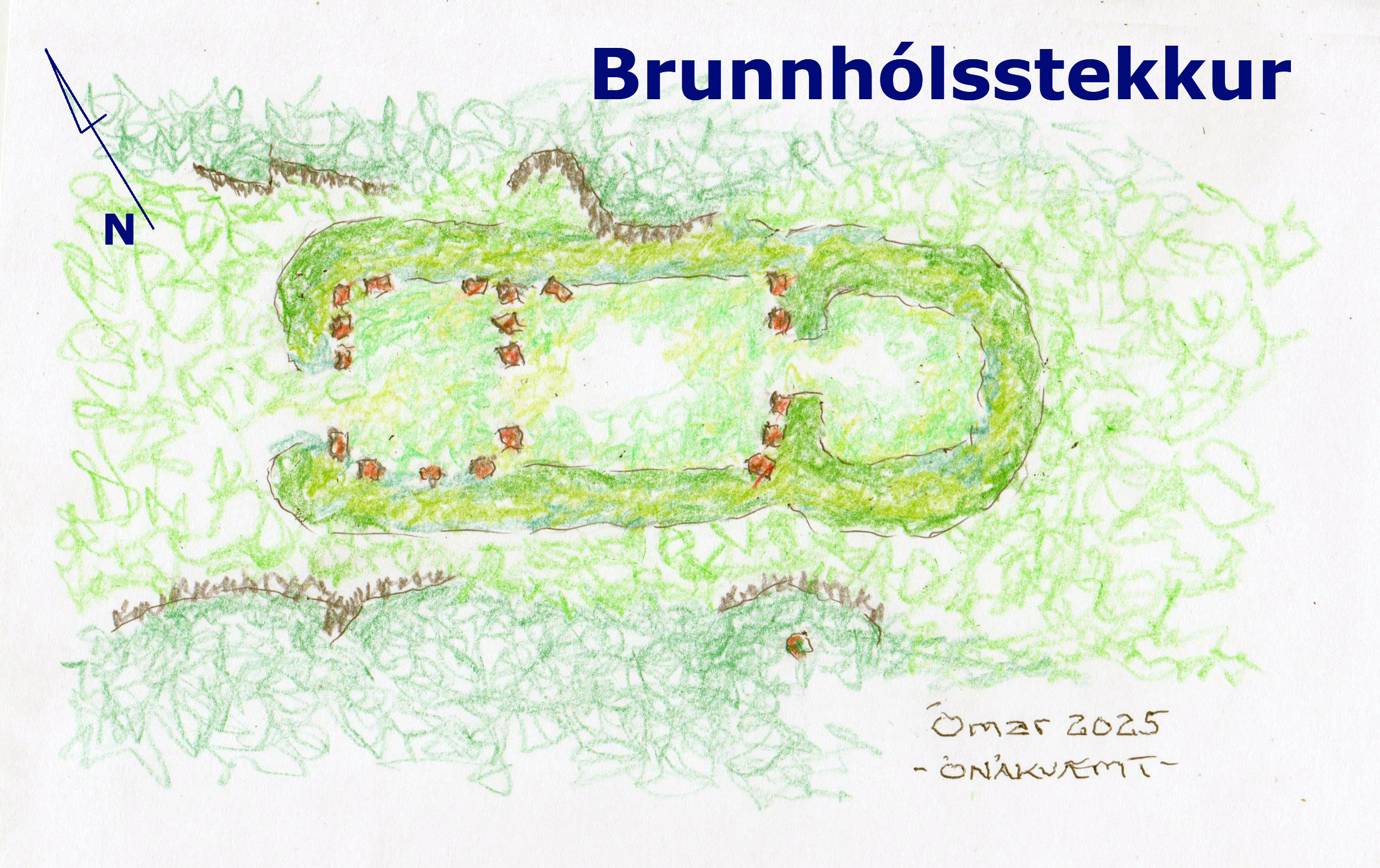 Um Brunnhól segir: „Brunnhóll heitir hóll með vörðu á og er hann suðvestur af Fornastekk en suður af Skjaldarkotslágum, u.þ.b. 200 m fyrir ofan Gamlaveg. Neðan og norðan við hólinn, rétt fyrir ofan fjárgirðinguna, er llítið vatnsstæði í klöpp og annað ofar og aðeins vestan við hólinn. Heimildir eru til um tvo Brunnhóla á þessum slóðum, Efri-Brunnhól og Neðri-Brunnhól og það gæti verið að þessi tvö vatnsstæði tengdust umræddum hólum.