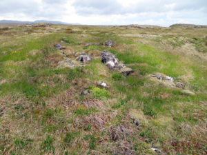 Tvær tóftir um 5x10m að stærð og snýr nálega austur -vestur. Tóft A er grjóthlaðin, um 5x7m að stærð…. og síðan kemur einhver steypa…“.