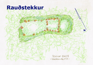 „Í örnefnaskrá Ásláksstaða segir: „Fyrir innan Arnarbælishólanna er Rauðstekkur, og var grjóthrúga upp á hólnum, sem hér Rauðhóll. Í sömu heimild segir: „Rauðstekkur eru stórþýfðir móar eða holt, sem snúa í norðvestur. Komið er að Rauðstekk, ef stefnt er þvert af gamla veginum frá grútarbræðslunni aðeins vestan við deili og gengið í 7-8 mínútur. Ekki man Guðjón eftir mannvirkjum þar.“
