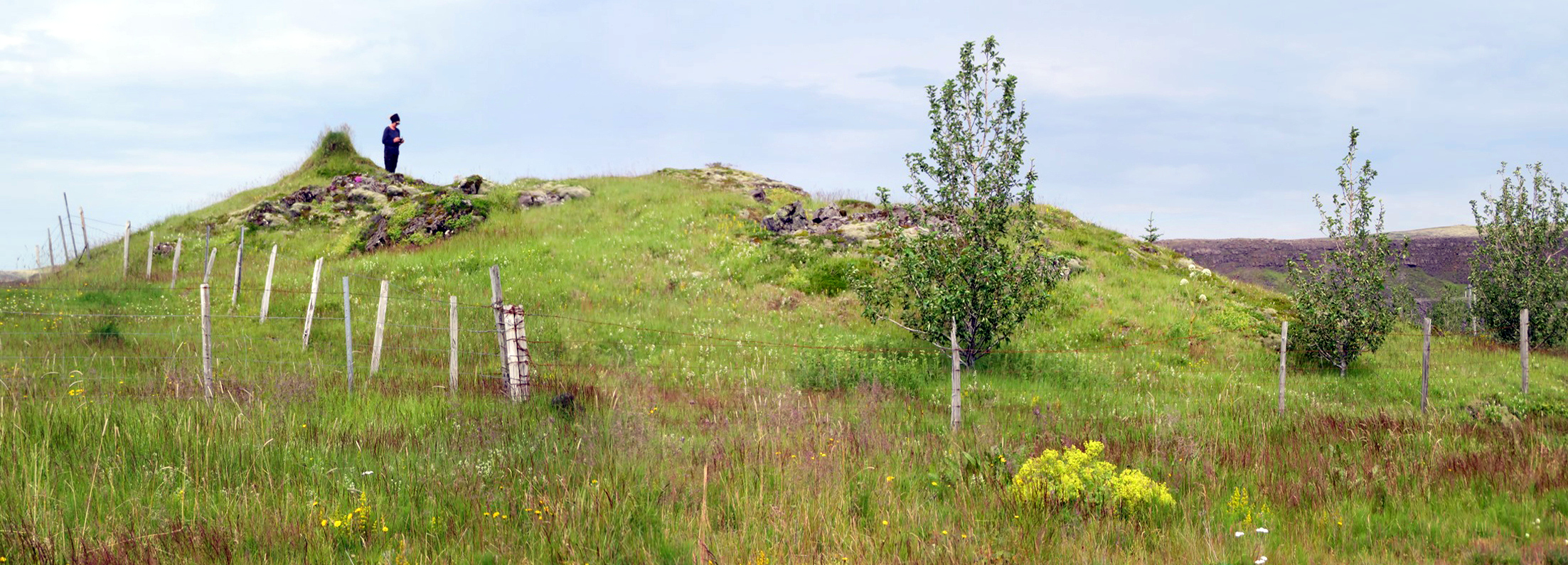 Slétt, grasivaxið tún er til allra átta frá Borgarhól. Gaddavírsgirðing liggur eftir vesturhlið hólsins.
