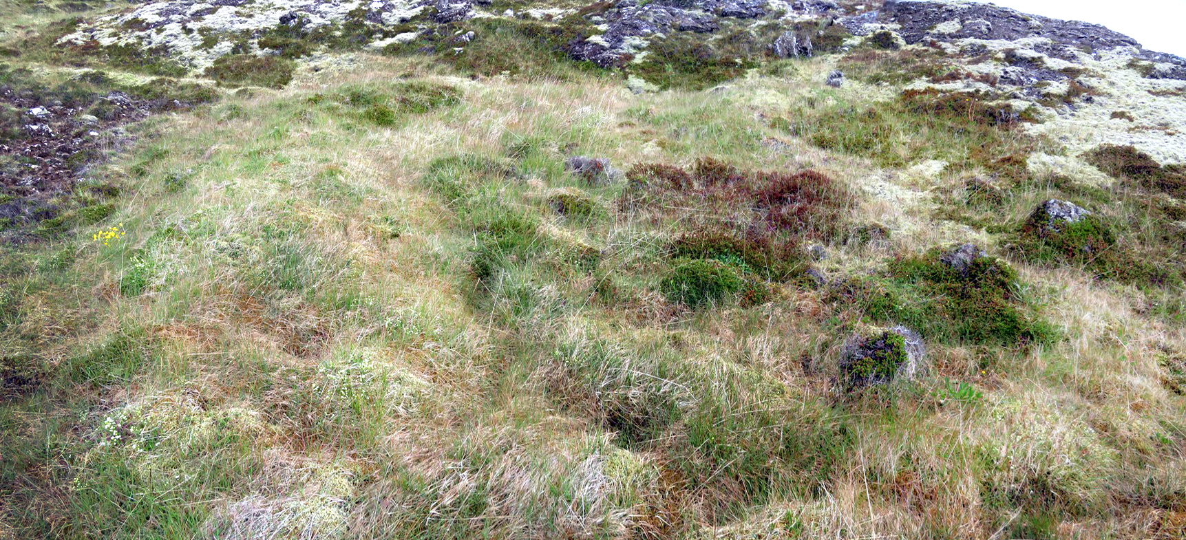 FERLIR gekk í framhaldinu með Birgi Þórarinssyni, húsbónda á Minni-Knarrarnesi, upp í heiðina á tilnefndu svæði. Birgir er þarna öllum hnútum kunnugur.