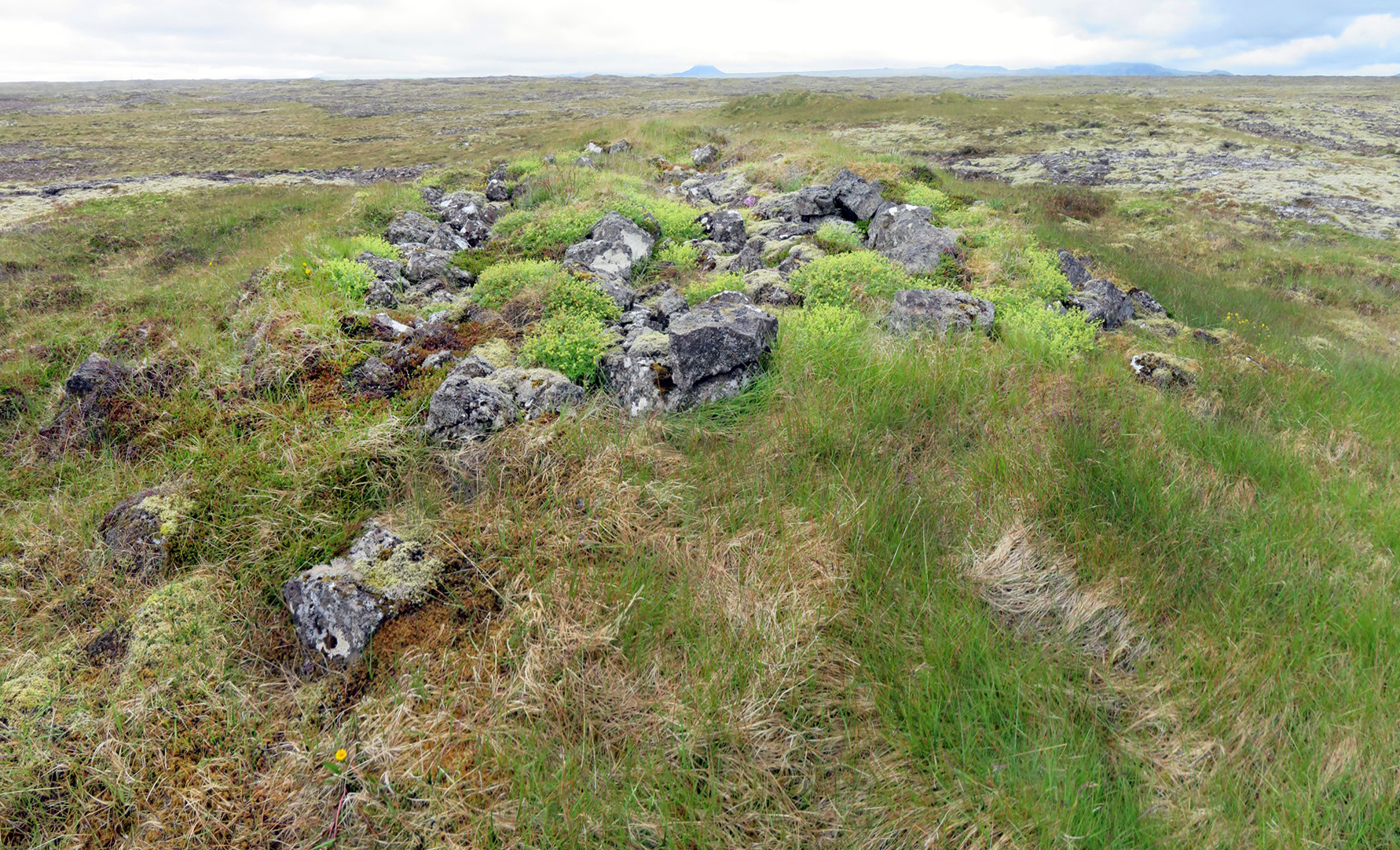 Á göngu FERLIRsfélaga í heiðinni ofan Vatnsleysustrandar, millum Auðnaborgar og Lynghólsborgar, ofan Knarrarness, rákust þeir m.a. á fjórar nálægar tóftir á grónum klapparhrygg, á og við svonefnd Sauðholt.