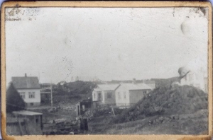 Til vinstri í fjarska, er líklega Brúarhraun, næst Gunnarsbær, hann var rifinn fyrir allmörgum árum, þar er nú bílastæði. Í fjarska er líklega Hraunprýði, það var rifið, nú er þar bílastæði. Nær, fyrir miðri mynd, lágreist hús, það var Gunnarssund 4, rifið, á lóðinnin stendur nú tveggja hæða steypt hús. Annað hús frá hægri er hús sem fyrst var Miðsund 3 en er nú Austurgata 30. Það hús byggði Christian Olauvson Smith árið 1905 en hann kom til landsins á vegum Jóhannesar Reykdals til að setja upp vélar í nýja timburverksmiðju hans, við lækinn. Því næst er húsið Austurgata 32 , áður Miðsund 4, byggt 1906.