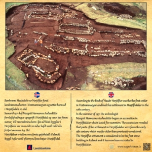 Landnám – Reykjavík; skilti. Staðsetningar minjastaða.