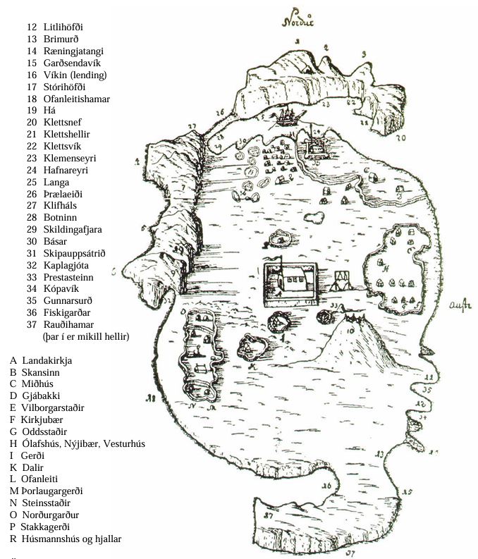 Vestmannaeyjar – Uppdráttur af Heimaey frá 1776
