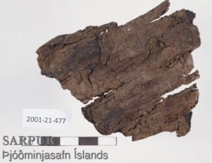 1. Veggjarbrot frá því fyrir 871 +/-2, elsta mannvirkið sem fundist hefur í Reykjavík.