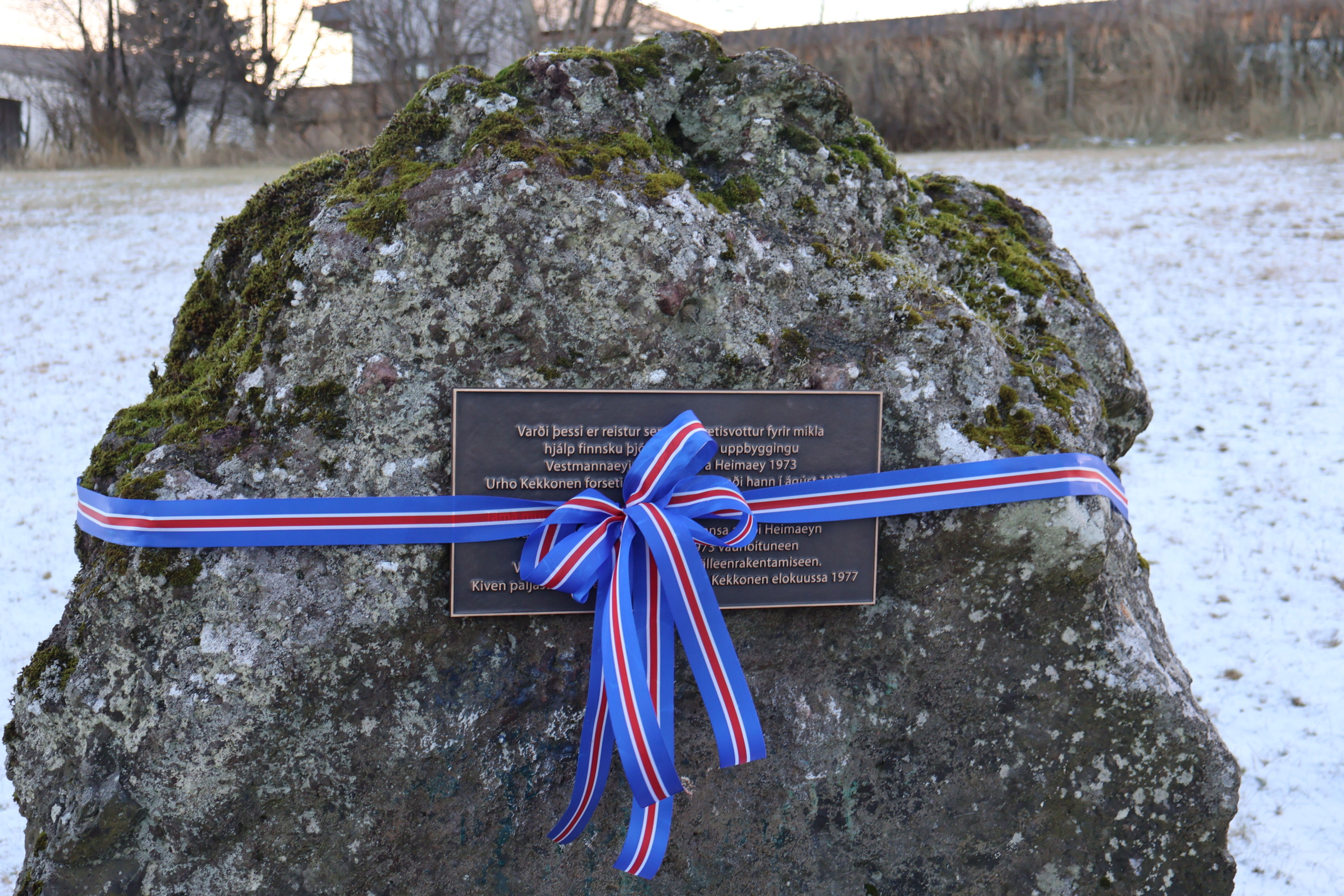 Minnismerkið hefur verið framan við Valhöll við Brautartún, en verið fjarlægt vegna framkvæmda [2024].