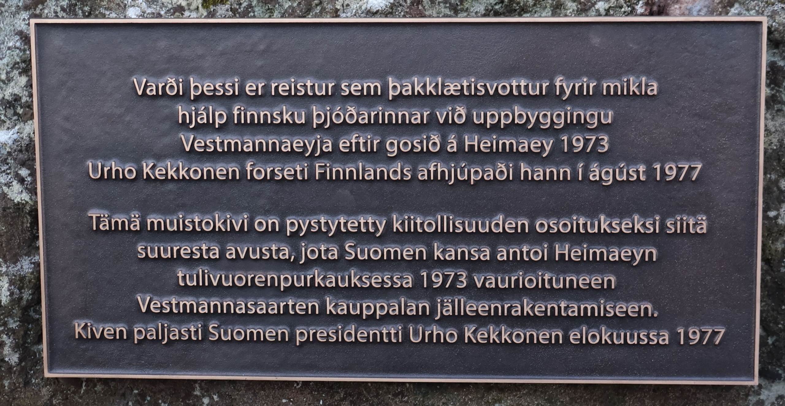 Minnismerkið var reist til minningar um framangreindan atburð. Það er þunn hraunhella, lík laufblaði upp á endann. Á henni er koparskjöldur með tákni 200 ára afmælis Reykjavíkurborgar; „Reykjavík – Sveitarfélögin á Suðurnesjum“.