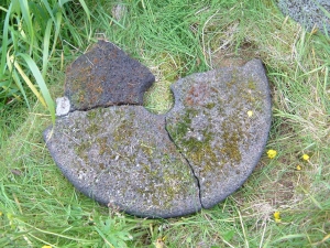 Til eru varðveittir steinar með ýmsum merkjum klöppuðum í, svo sem krossi eða upphafsstöfum eiganda og jafnvel ártali eða ýmsum öðrum táknum.